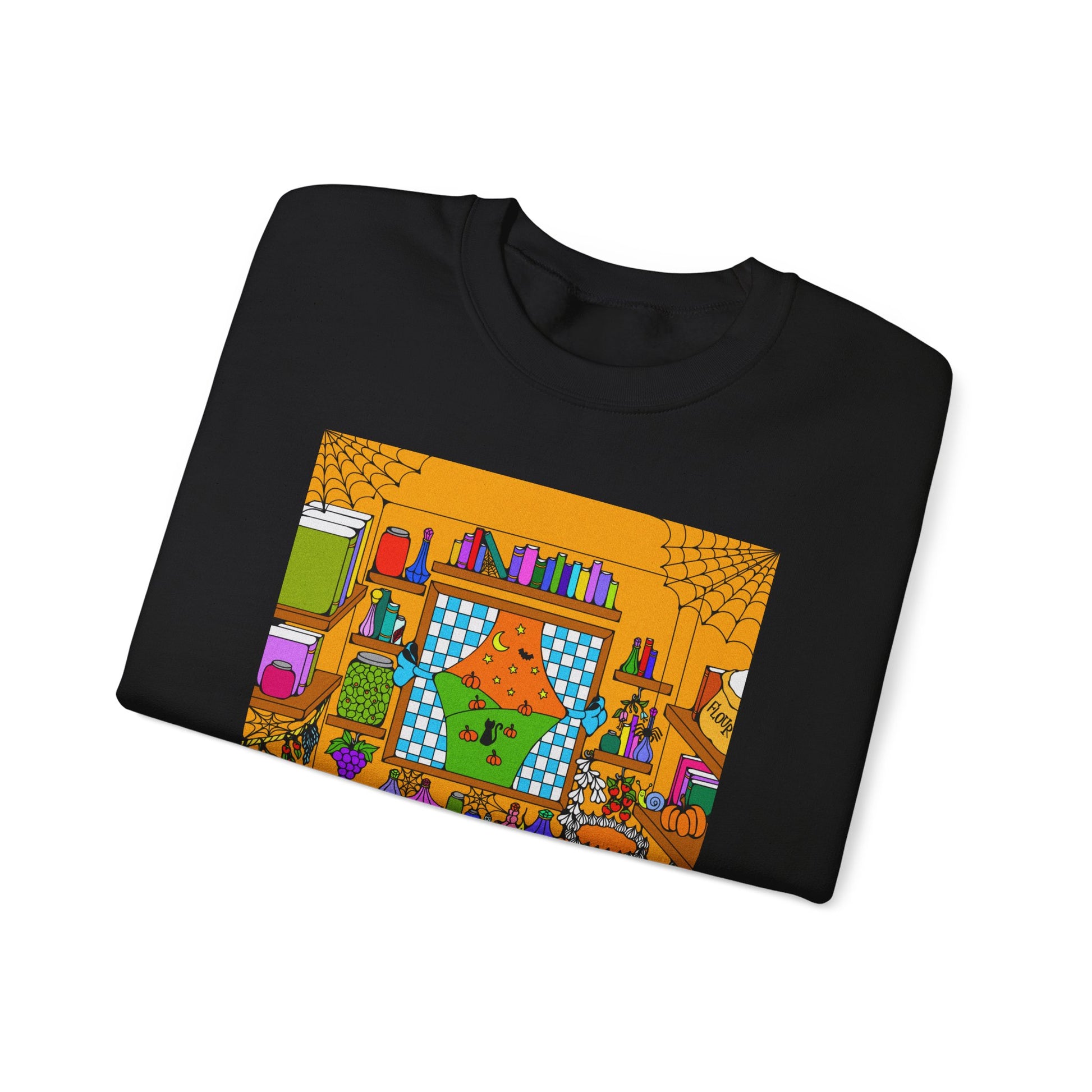 Wrap yourself in a cozy, story-filled layer that feels like a warm autumn evening spent crafting and sipping spiced cider. This crewneck carries a bright, detailed illustration of a lively fall craft table—patchwork quilts, pumpkins, jars of buttons, twinkling fairy lights and cobweb accents—so the sweatshirt reads like a snapshot of a maker’s seasonal nook. Soft and slightly substantial, it sits comfortably for relaxed weekends, craft nights, or strolling a leaf-strewn market. The embroidered/printed details and clean crew neckline give it both personality and polish, while durable stitching and OEKO-TEX dyes mean it’ll age with affectionate wear. Slip it on to feel like you’ve stepped into a comforting, creative ritual—hands busy, heart warm, and the house turning that perfect orange glow.